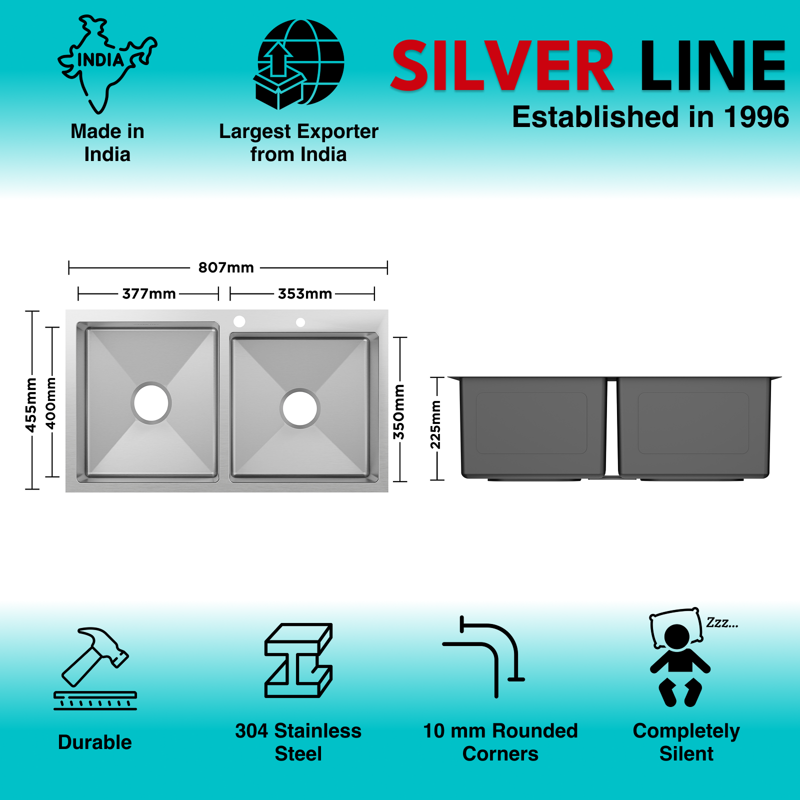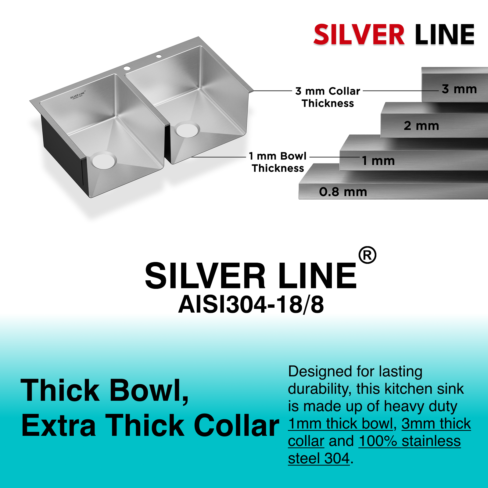 - Sheet Thickness: Handcrafted with 1mm thick bowl and 3mm thick collar, Silver Line sinks boast thickness profile that is made for longevity and silent performance.