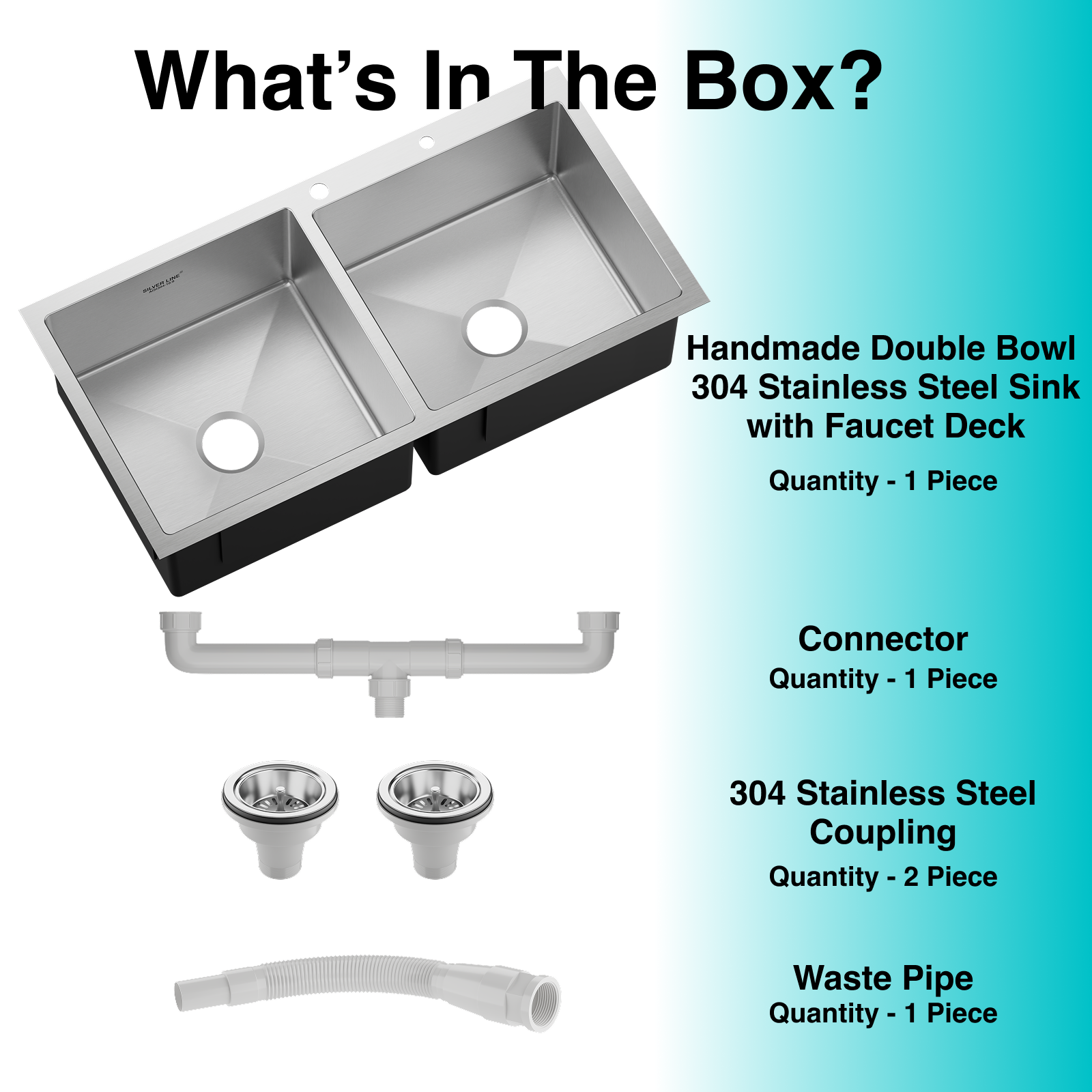 - Handmade Double Bowl with Faucet Deck 304 Grade Kitchen Sink - 1 Piece