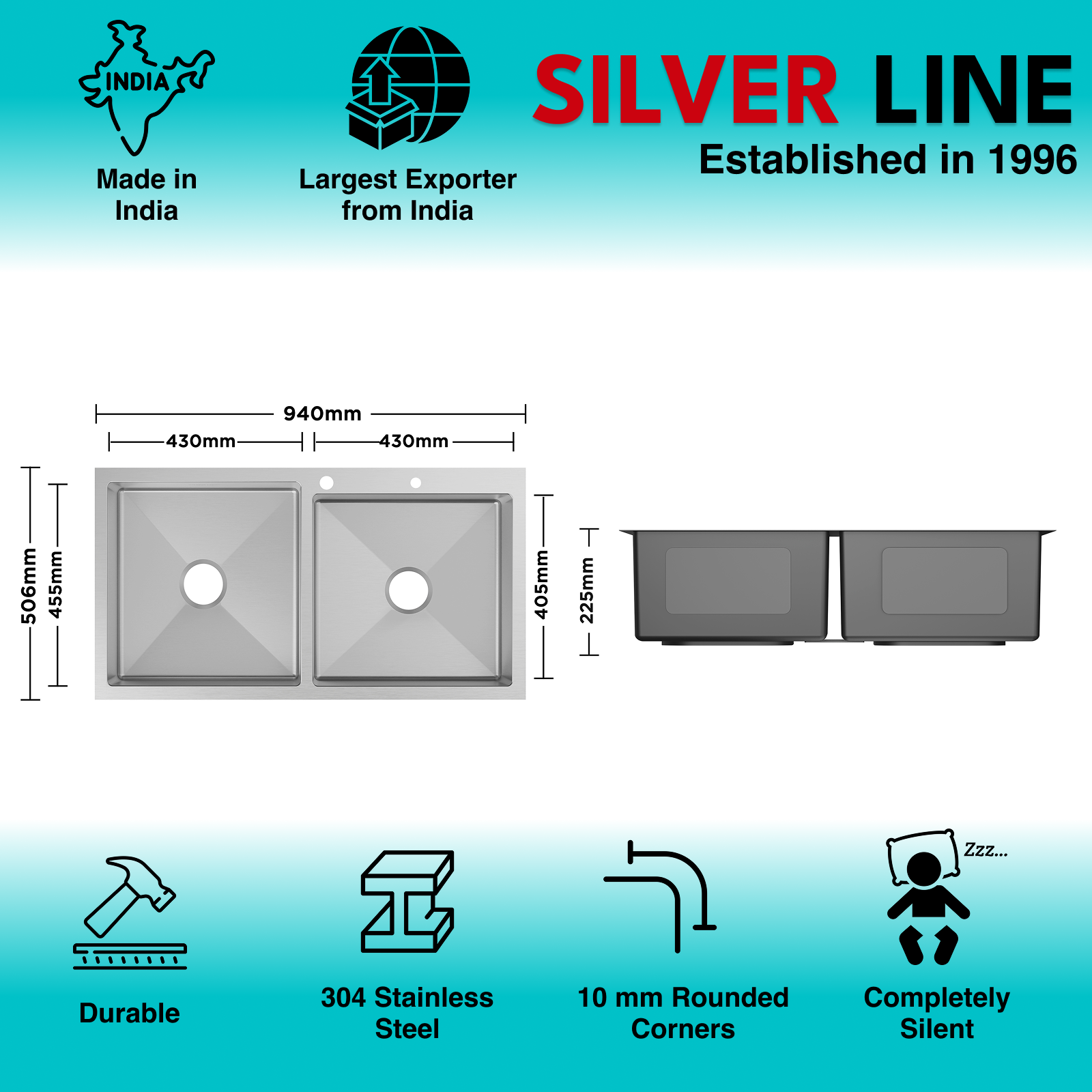 - 10mm Rounded Corners: Silver Line sinks come with 10mm rounded corners for effortless cleaning and reduce grime build-up.