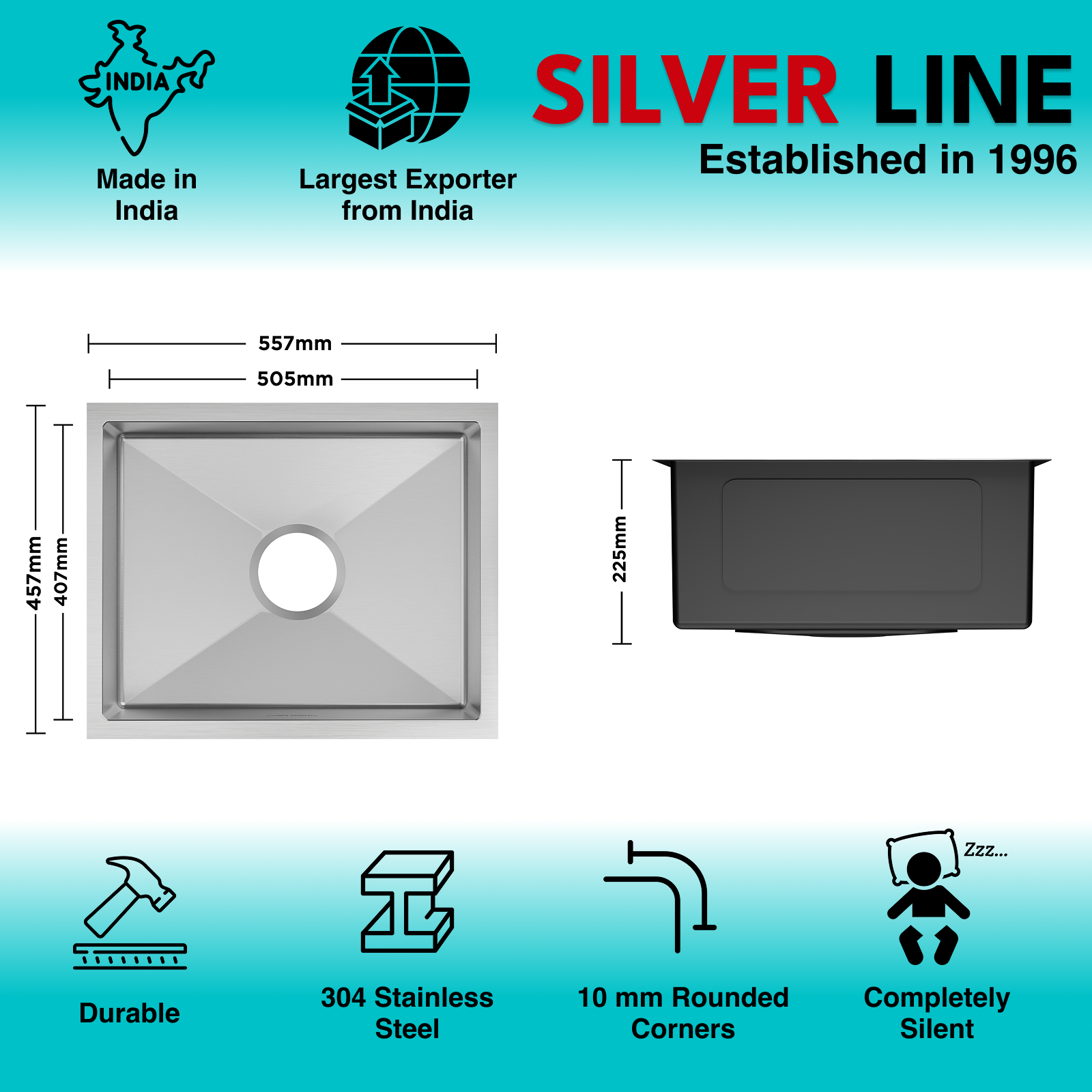 Handmade Single Bowl 304 Grade Kitchen Sink (22" x 18" x 9") - Silver Line