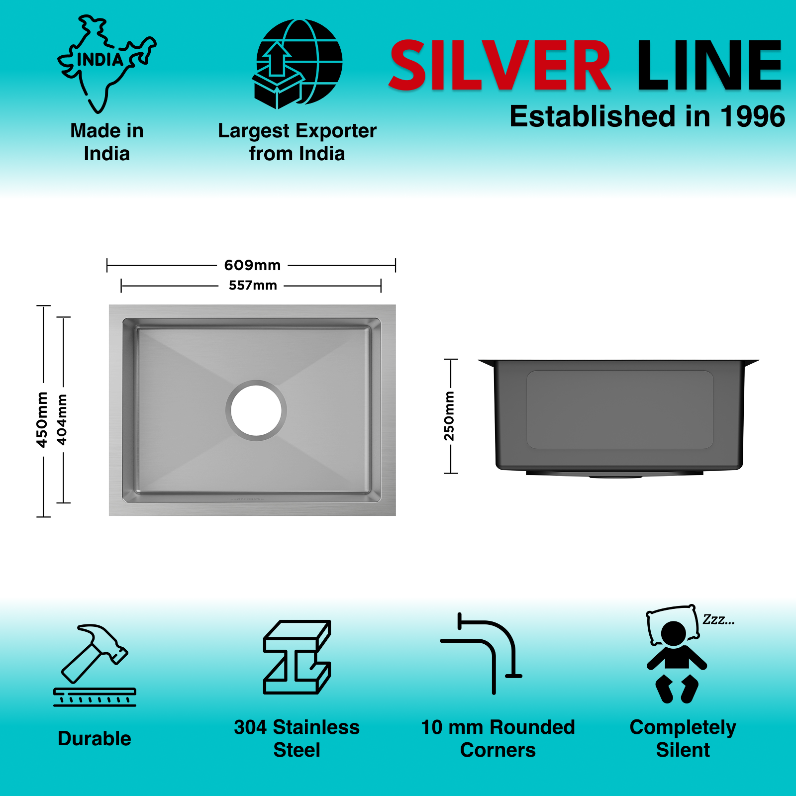 Handmade Single Bowl 304 Grade Kitchen Sink (24" x 18" x 10") - Silver Line