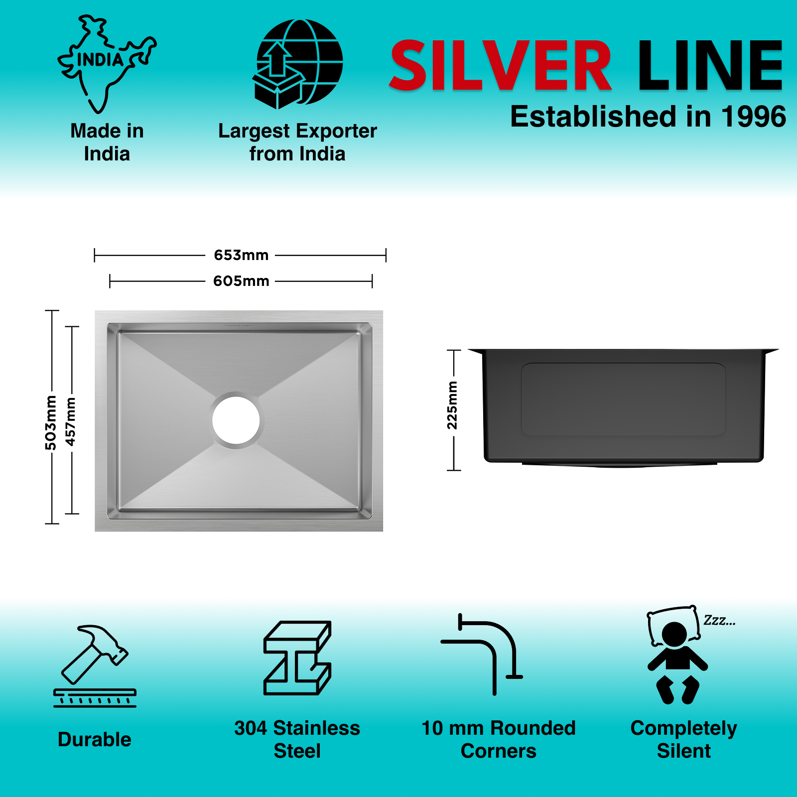 Handmade Single Bowl 304 Grade Kitchen Sink (26" x 20" x 9") - Silver Line