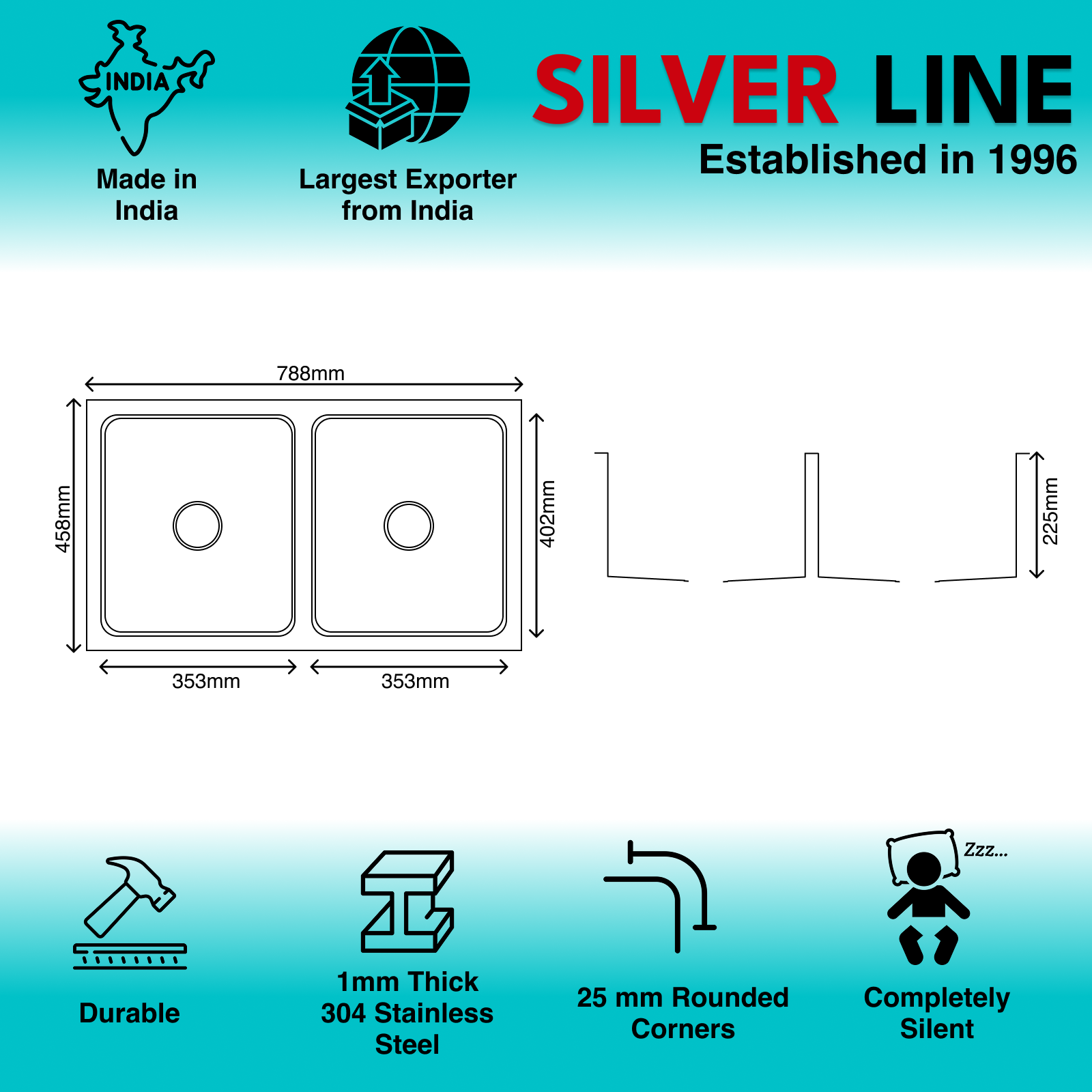 - Sheet Thickness: Precision-engineered with 1mm thick sheet,Silver Line sinks boast an optimized thickness profile that delivers superior low radius curves for longevity and silent performance.