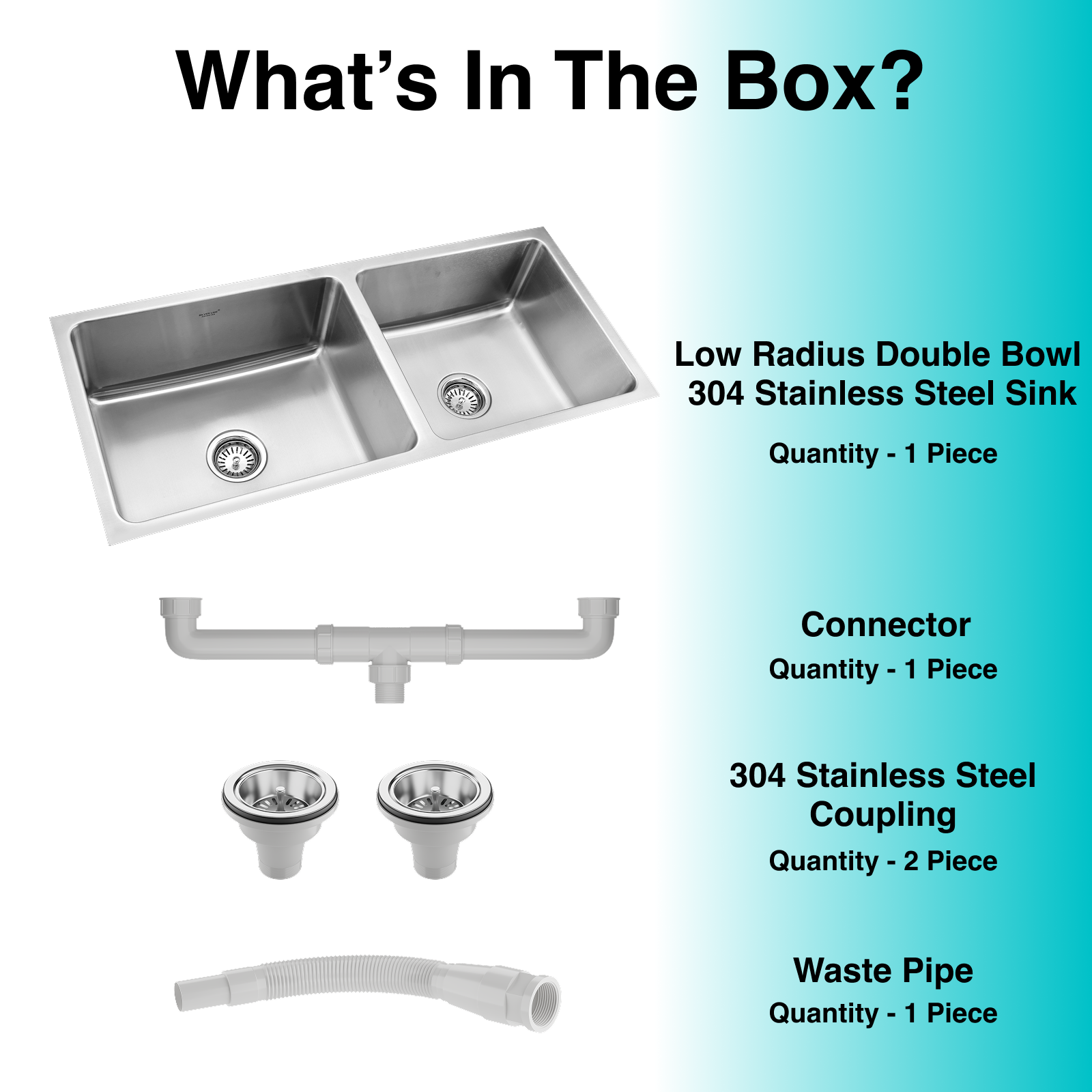 - Low Radius Double Bowl 304 Grade Kitchen Sink - 1 Piece