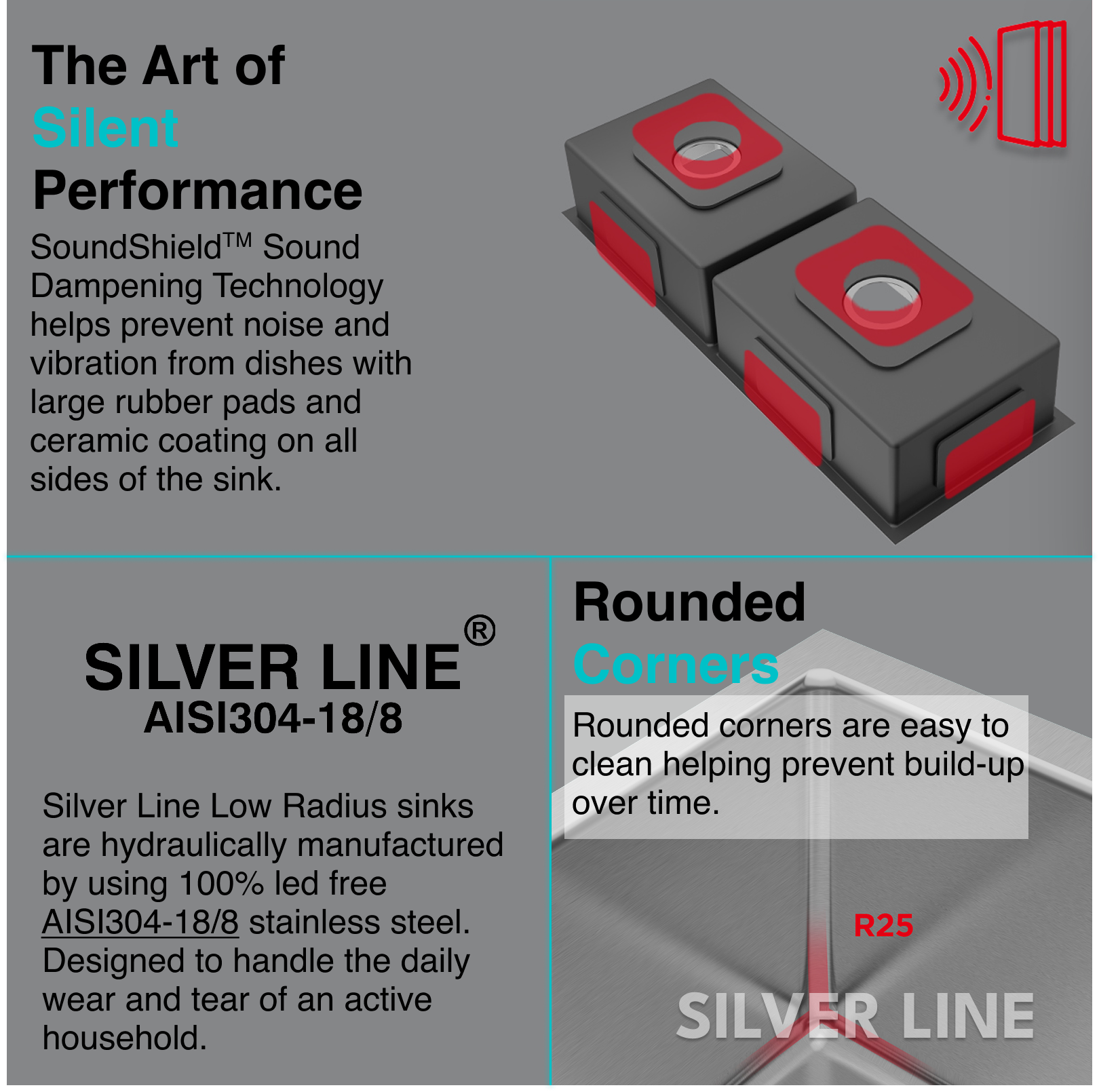 - Sheet Thickness: Precision-engineered with 1mm thick sheet, Silver Line sinks boast an optimized thickness profile that delivers superior low radius curves for longevity and silent performance.