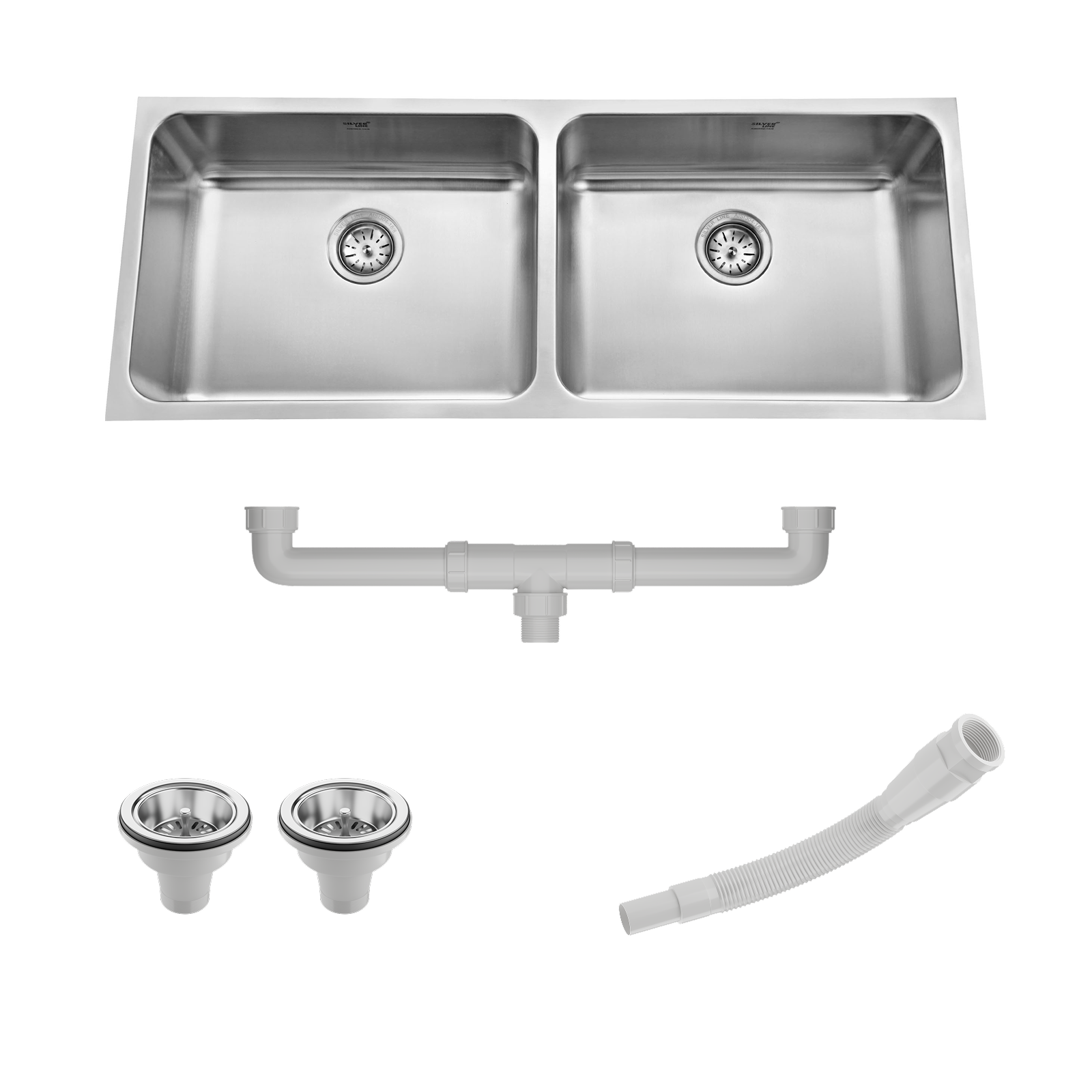 Low Radius Double Bowl 304 Grade Kitchen Sink (45" x 18" x 9") - Silver Line