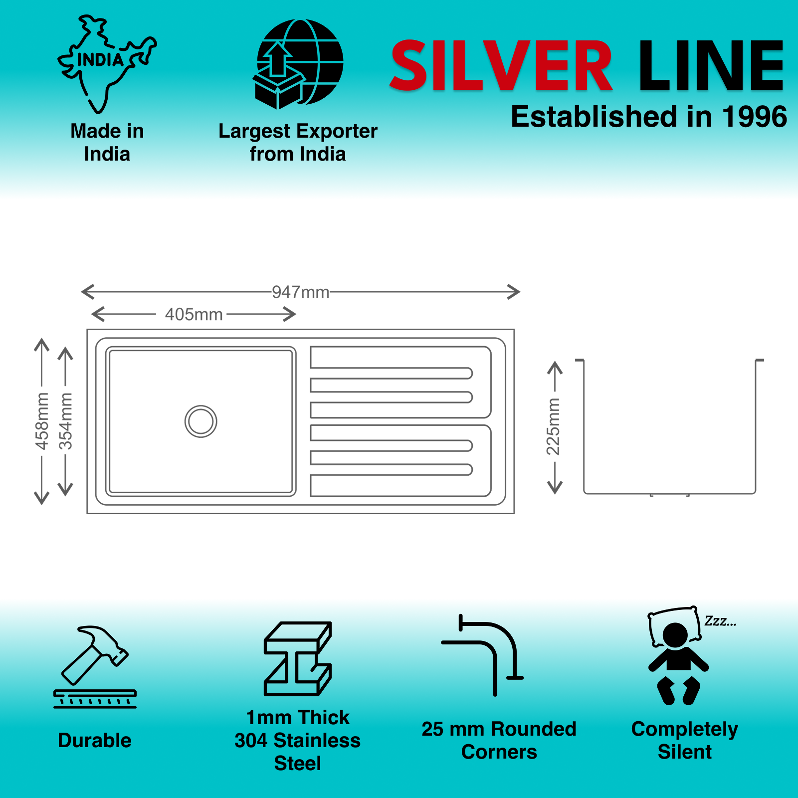 - Sheet Thickness: Precision-engineered with 1mm thick sheet,Silver Line sinks boast an optimized thickness profile that delivers superior low radius curves for longevity and silent performance.