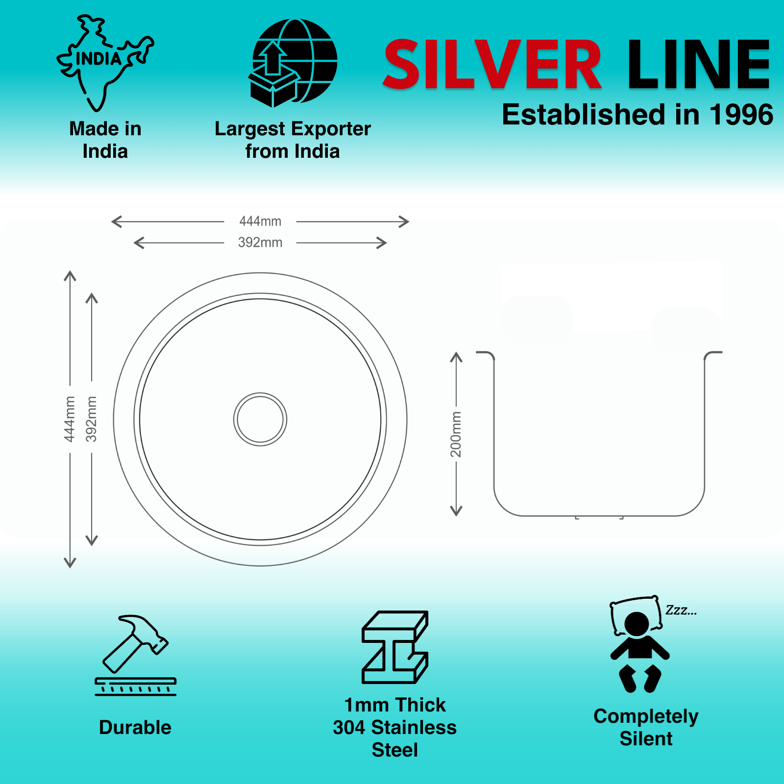 Regular Series Single Bowl 304 Grade Kitchen Sink (17 ½” Round Regular) - Silver Line
