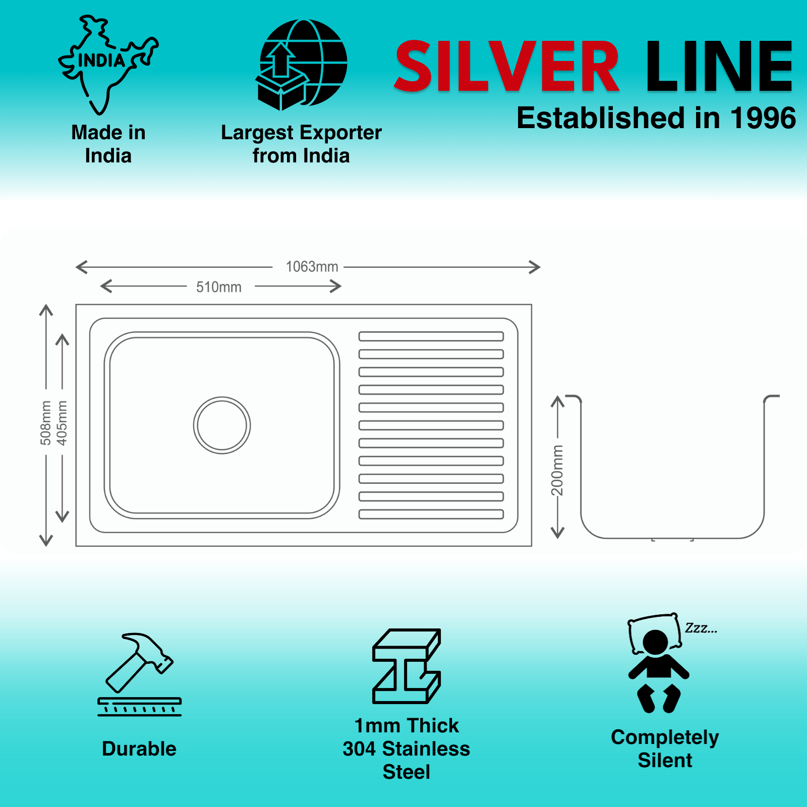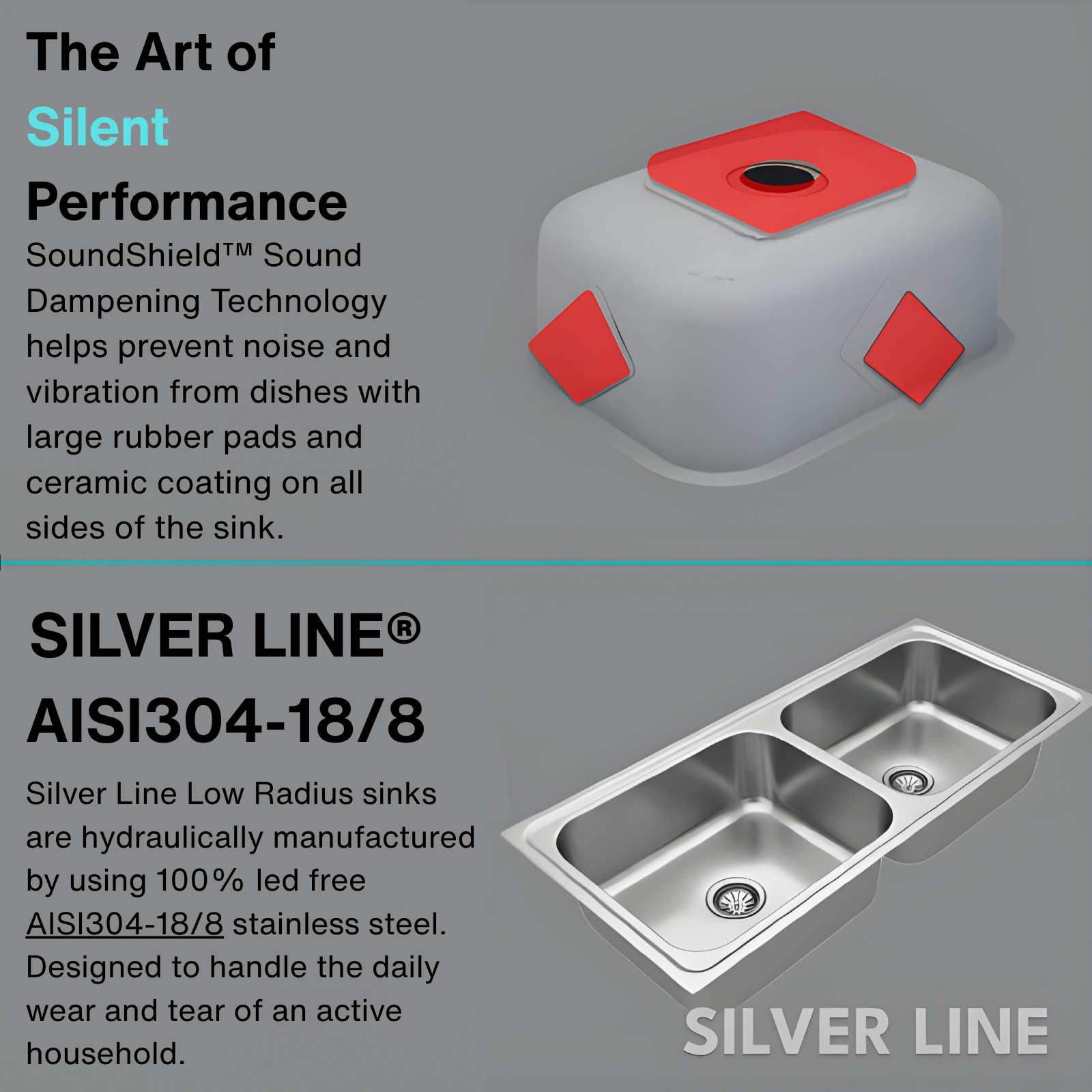 - Sheet Thickness: Precision-engineered with 1mm thick sheet, Silver Line sinks boast an optimized thickness profile that delivers superior low radius curves for longevity and silent performance.