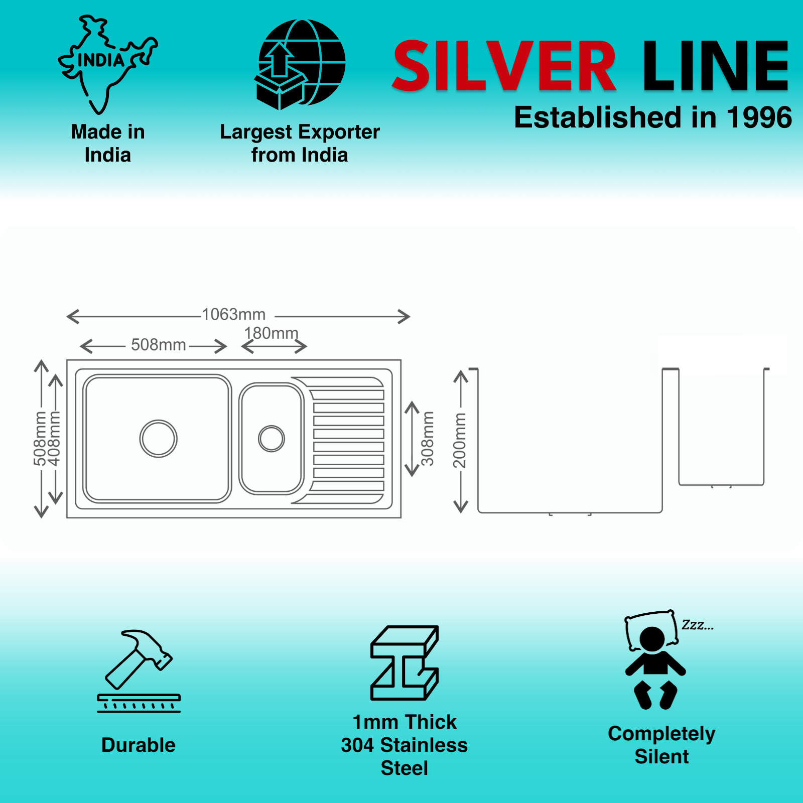 - Sheet Thickness: Precision-engineered with 1mm thick sheet, Silver Line sinks boast an optimized thickness profile that delivers superior low radius curves for longevity and silent performance.